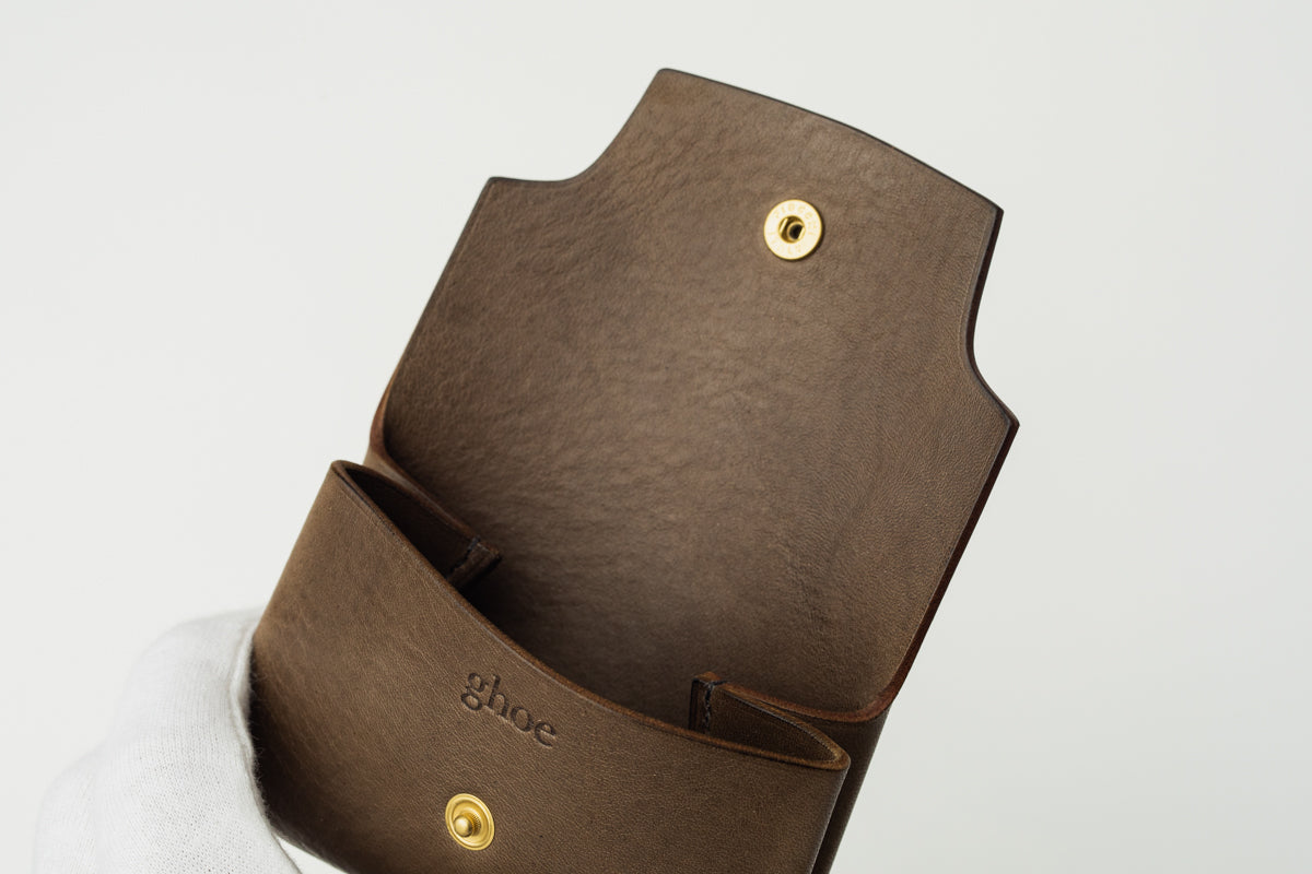 折り返しのマチにより、カードと小銭が区分けされる構造です。