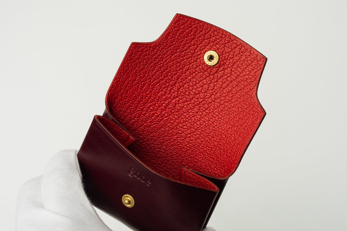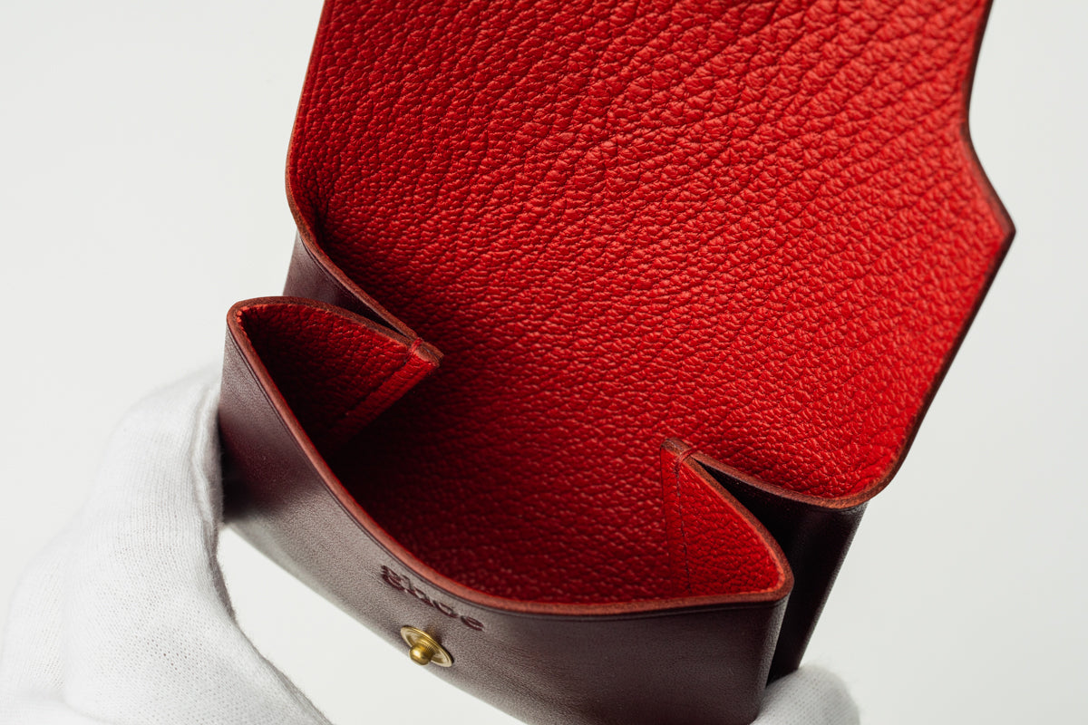 折り返しのマチにより、カードと小銭が区分けされる構造です。
