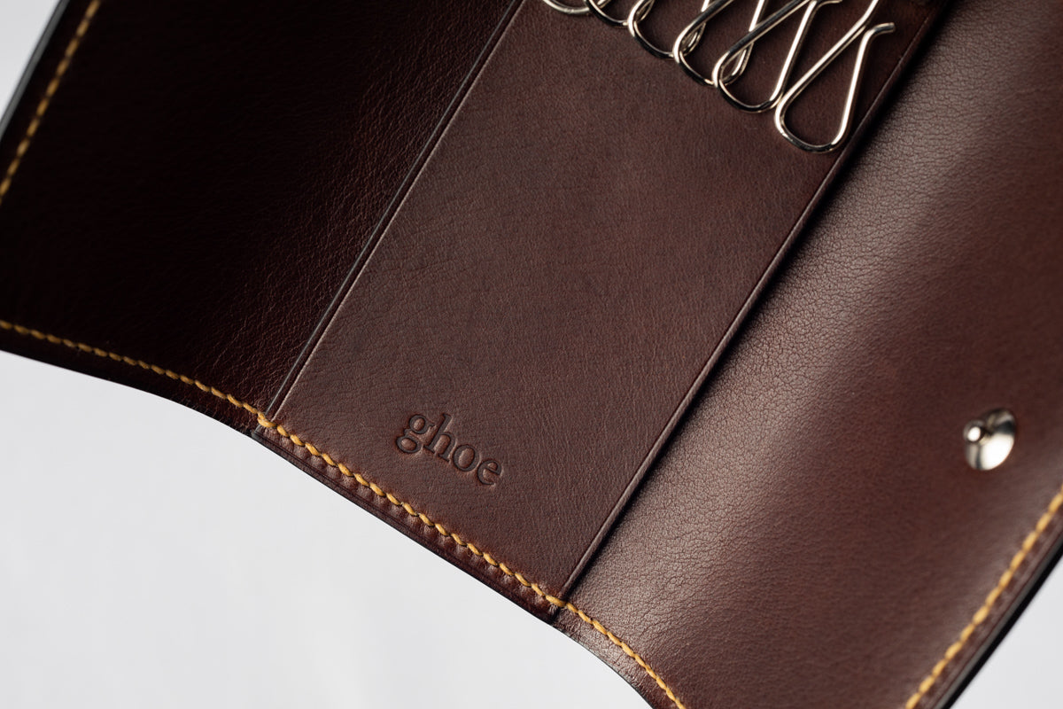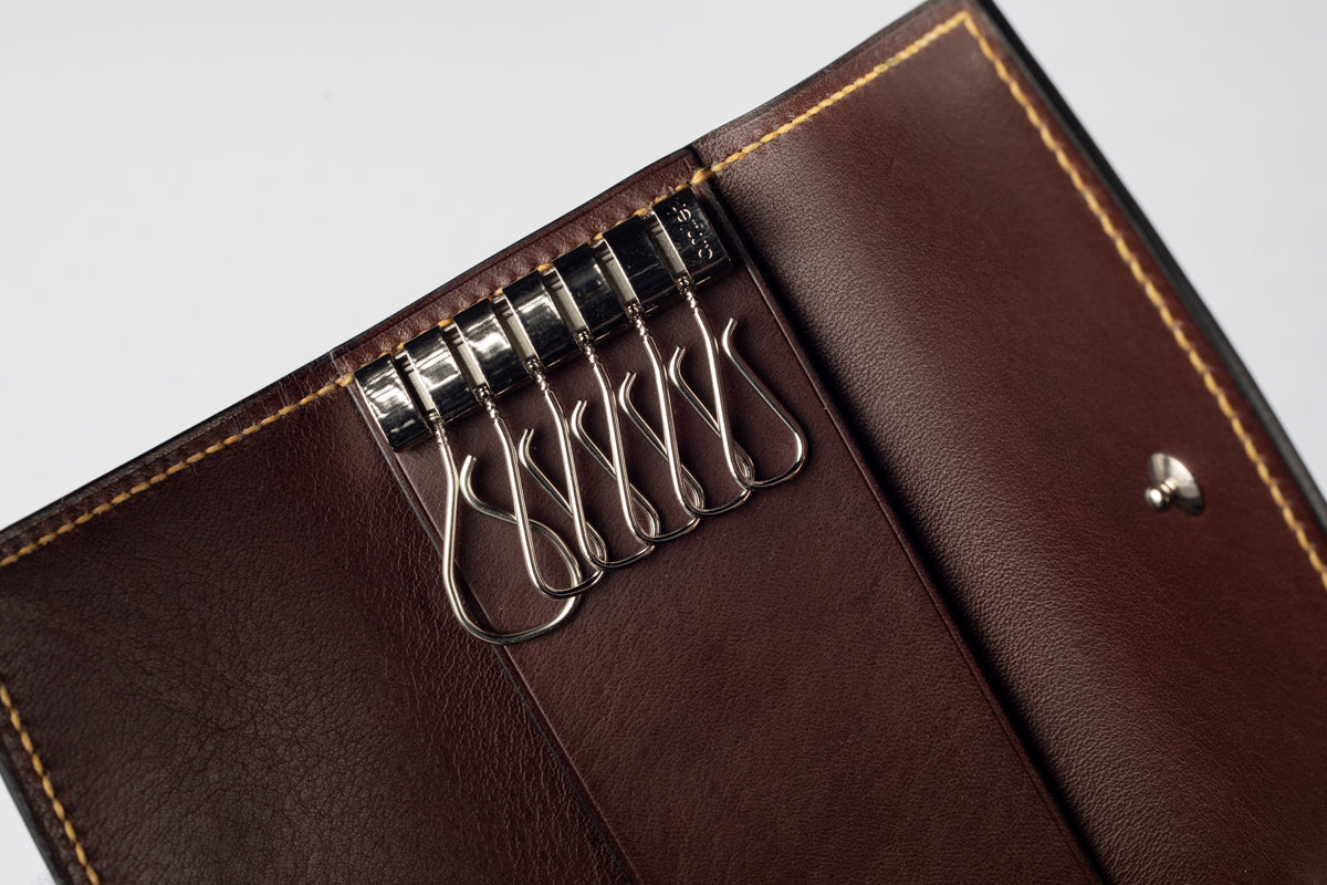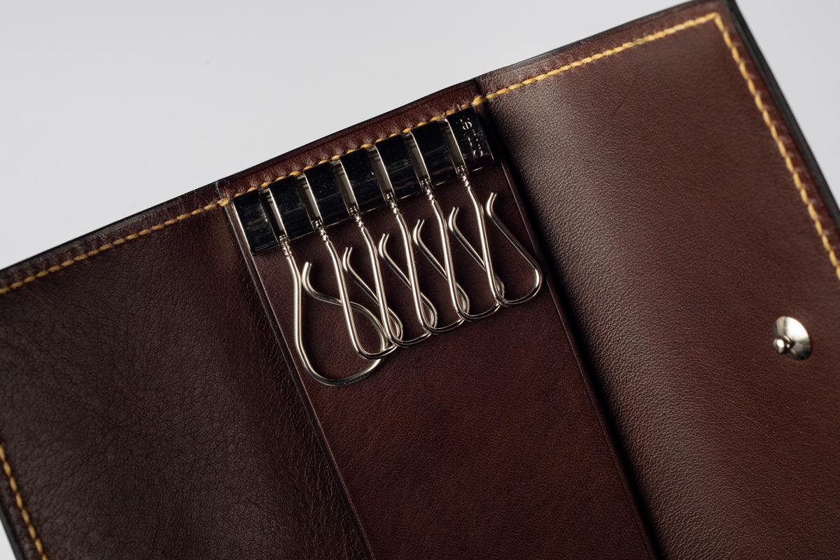 キー金具は美しさと頑丈さで世界的に評価の高いスイスのamiet社製、ホックは開閉の小気味良いイタリアのFIOCCHI社製を採用。