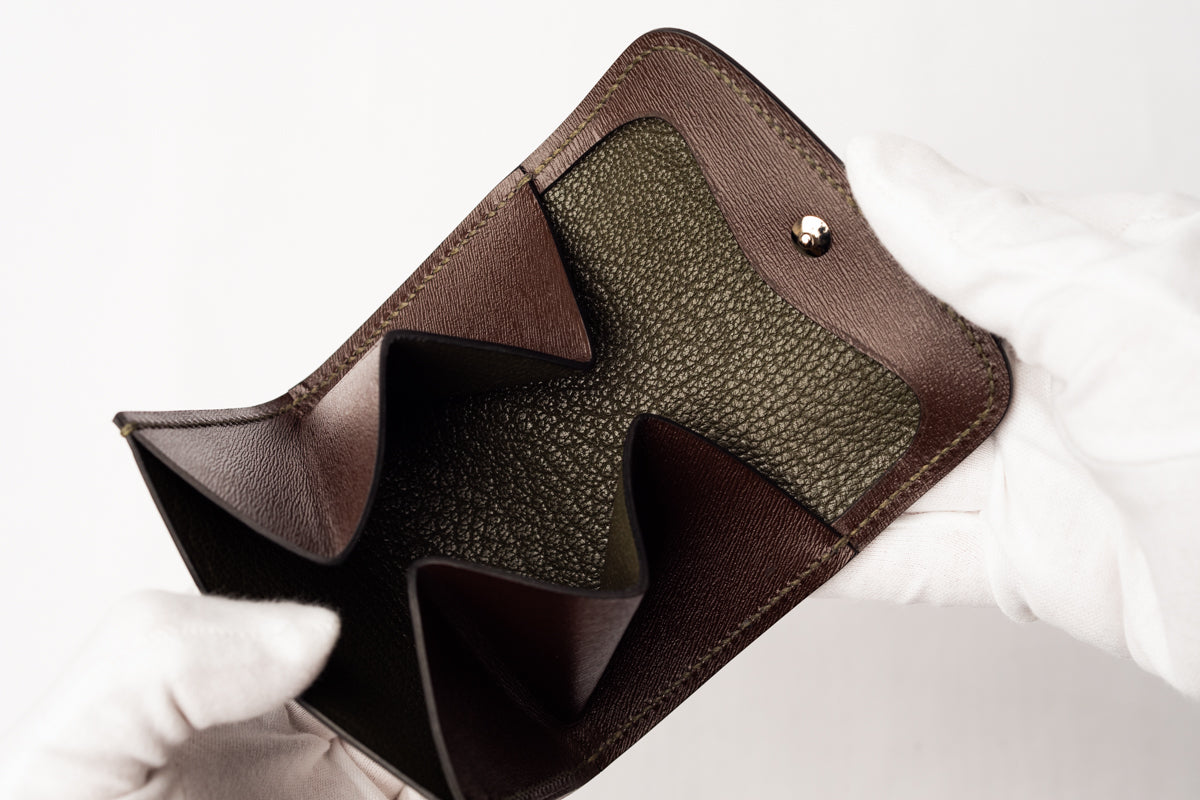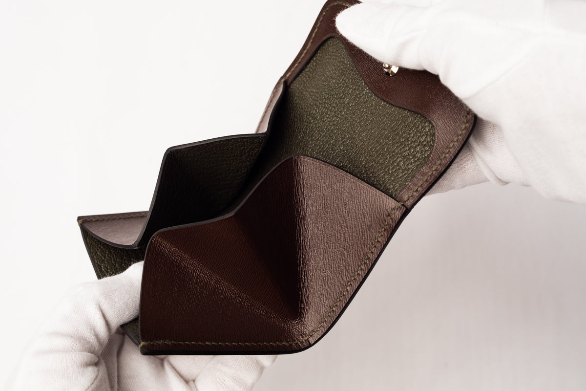 背面のカードポケットには、定期やICカード、折りたたんだお札も入ります。