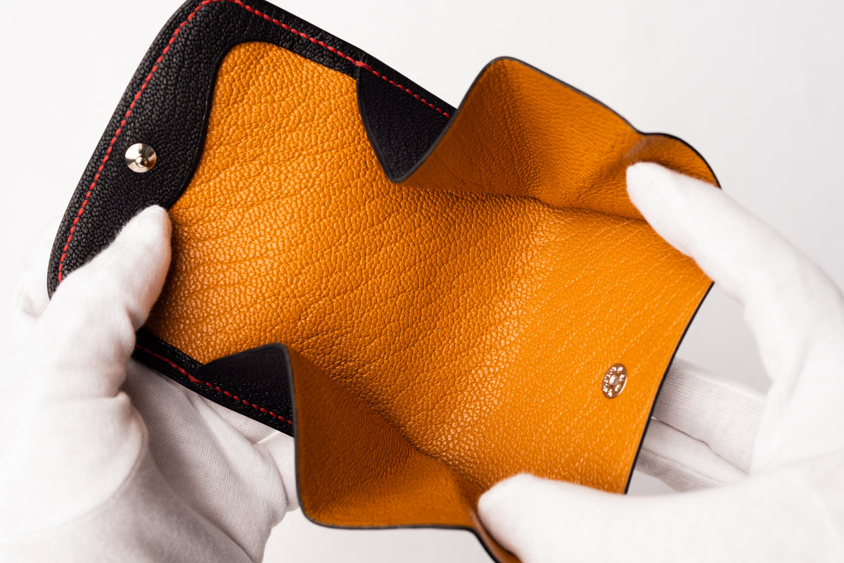 背面のカードポケットには、定期やICカード、折りたたんだお札も入ります。
