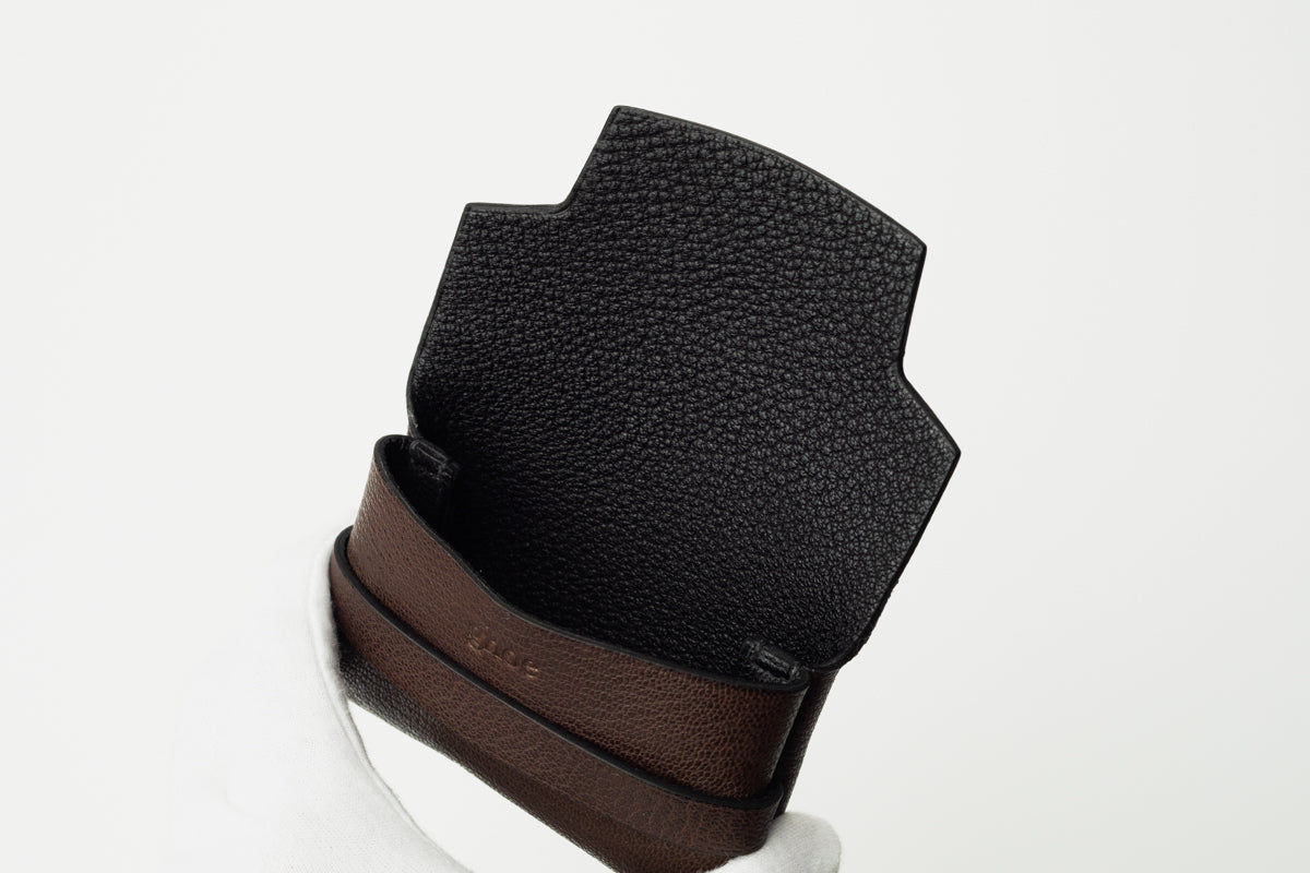 ループ取り付け部の革厚を微調整することで、美しいフォルムを実現。