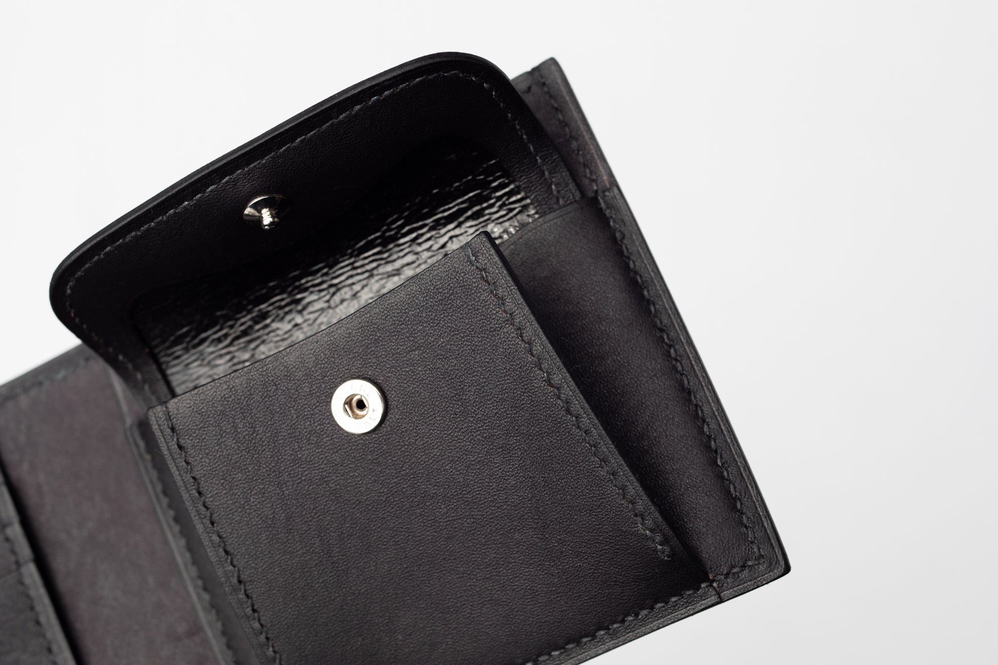 札入れ1箇所、カードポケット3箇所+隠しポケット3箇所、小銭入れが一体となっております。