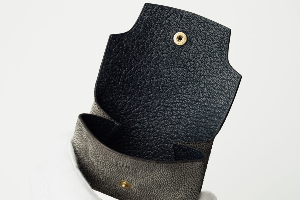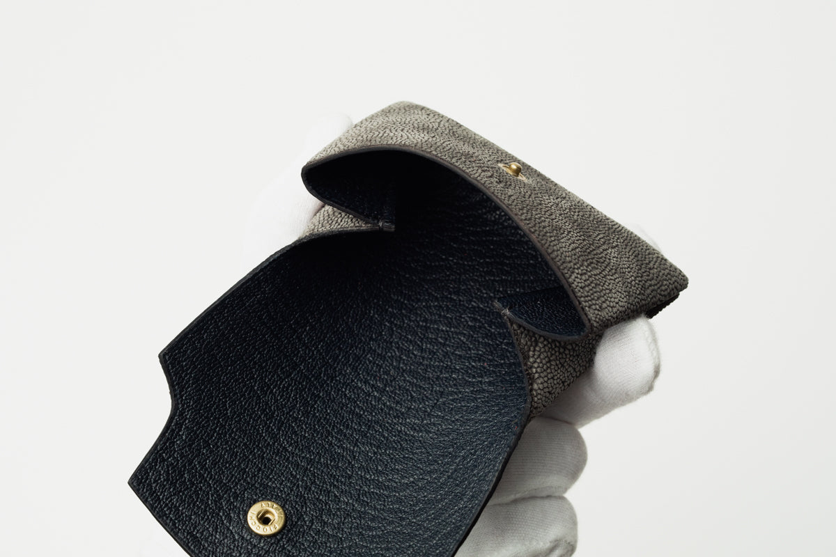 折り返しのマチにより、カードと小銭が区分けされる構造です。