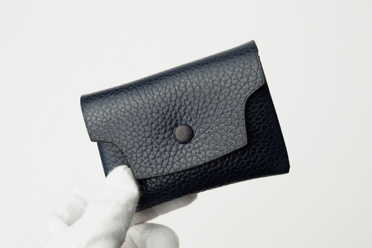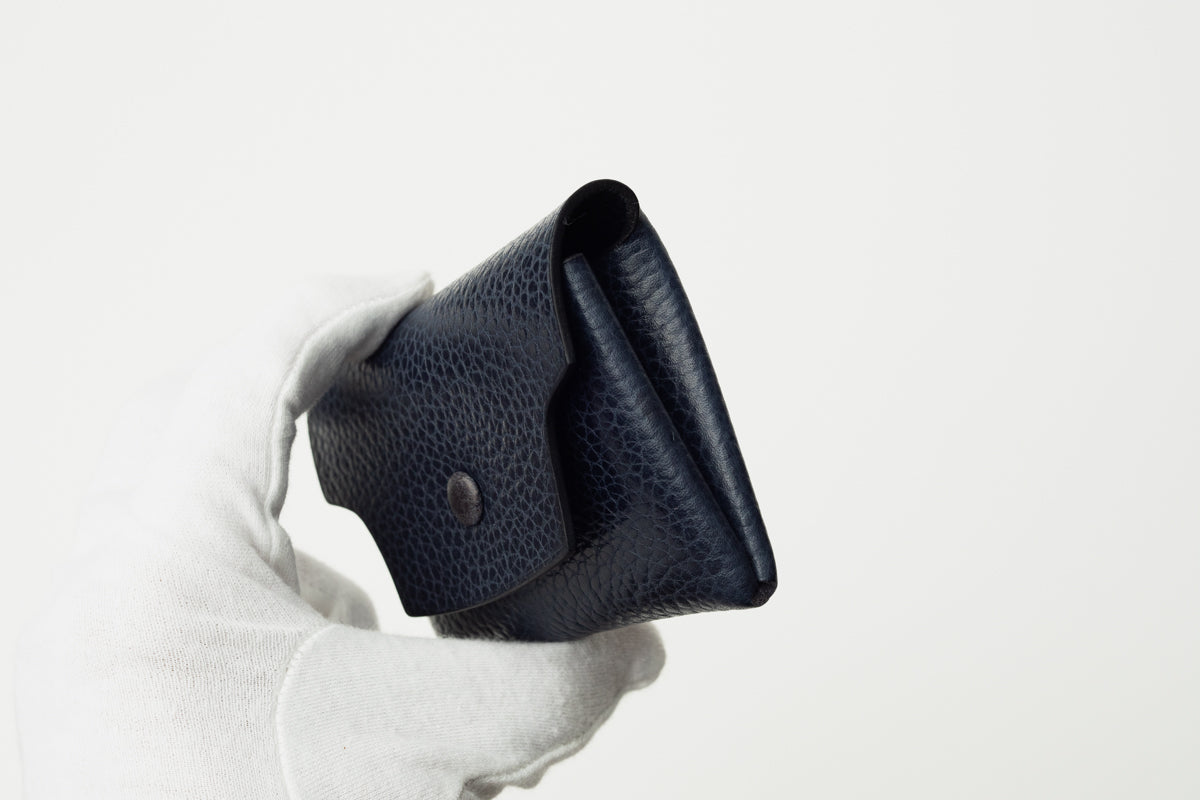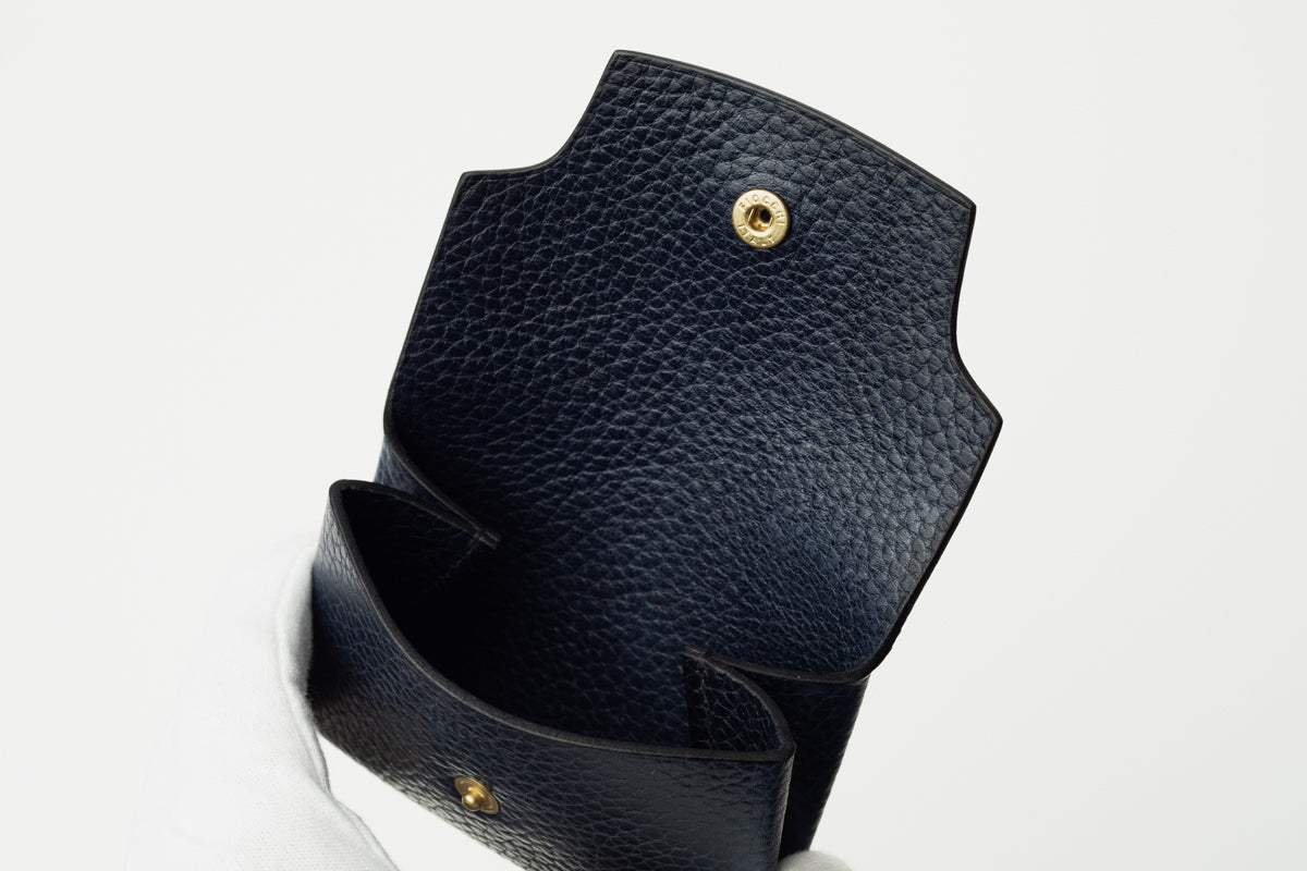 折り返しのマチにより、カードと小銭が区分けされる構造です。