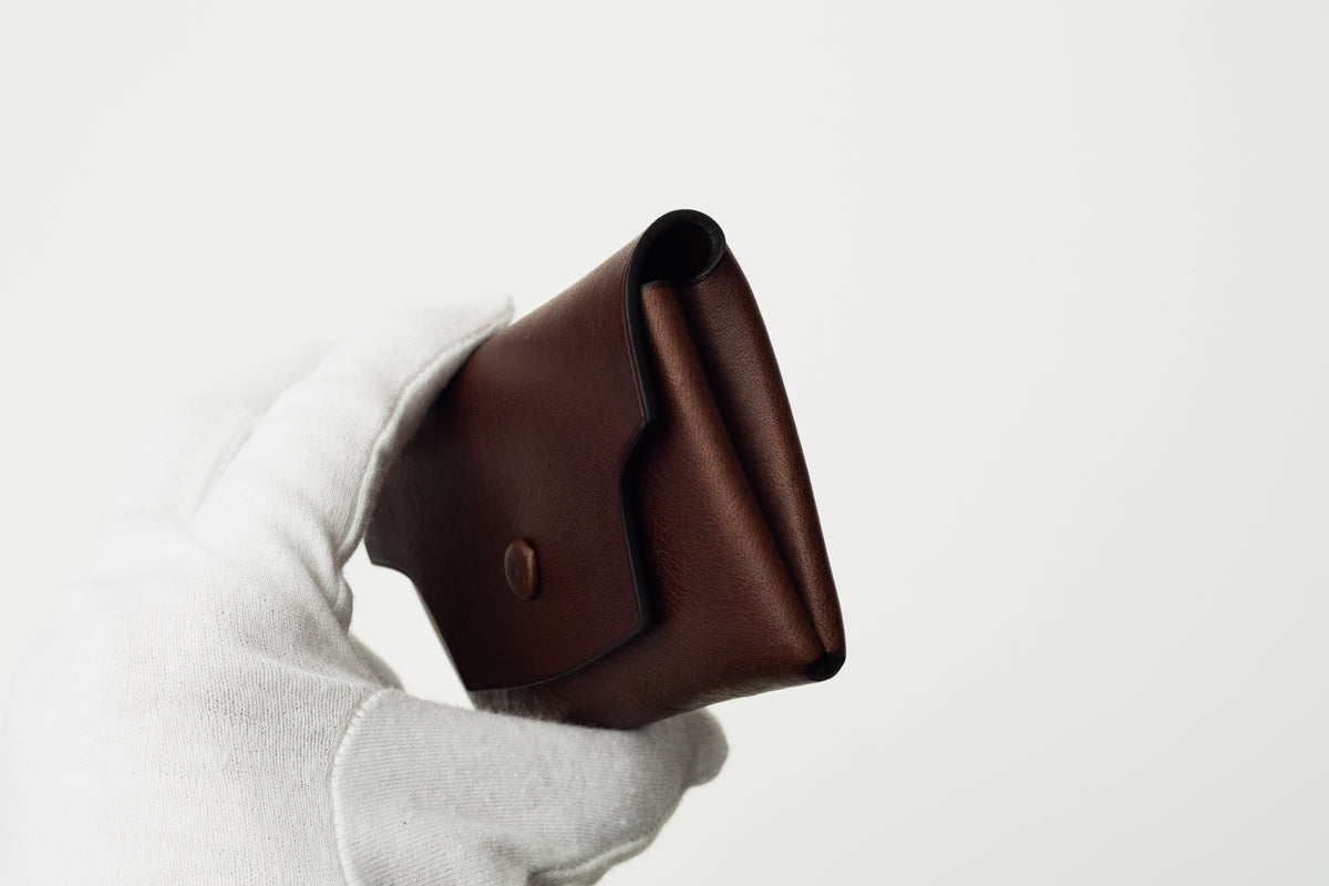 折り返しのマチにより、カードと小銭が区分けされる構造です。