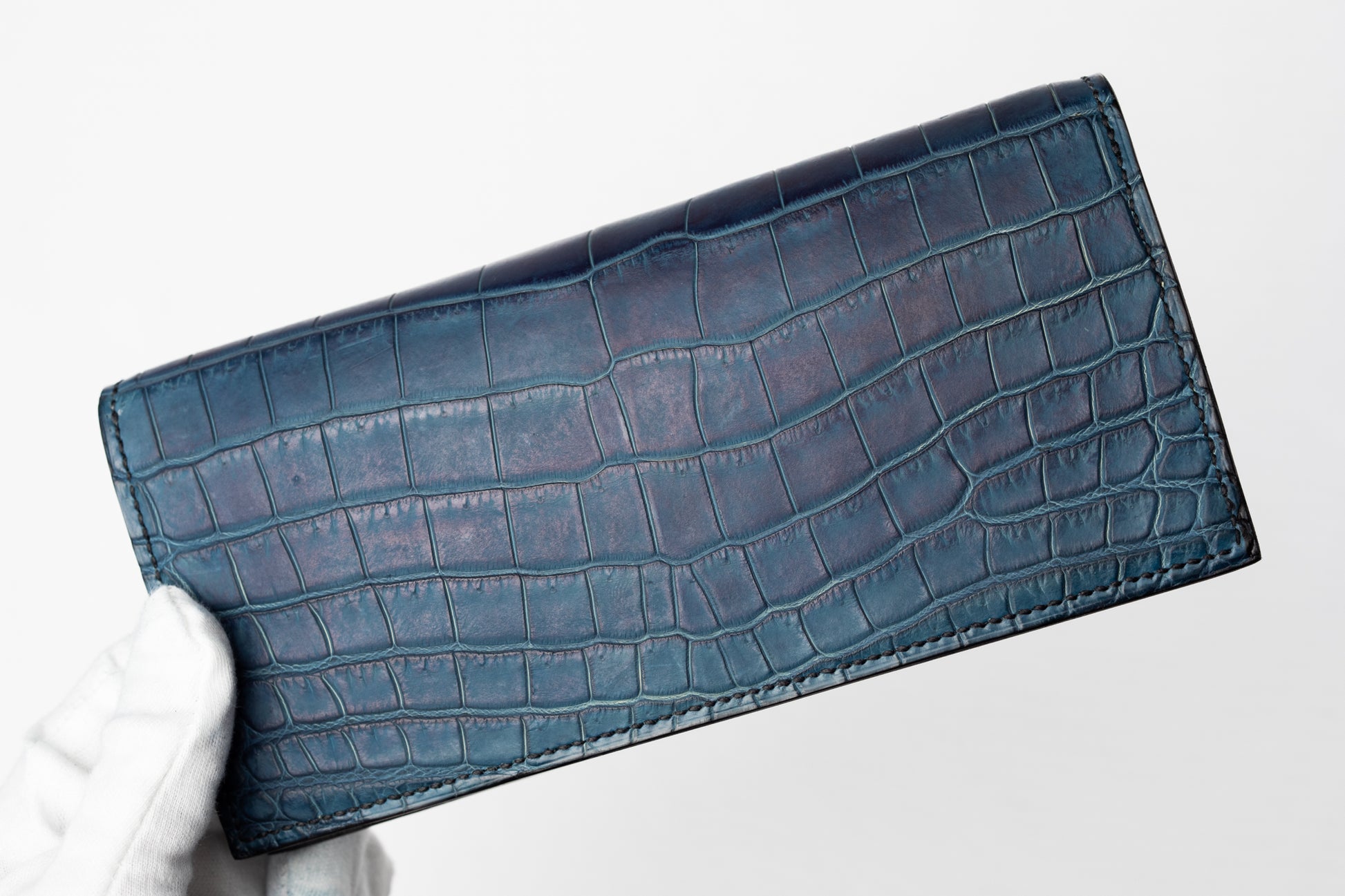 長財布 本藍染クロコダイル(ナイル) マチ付