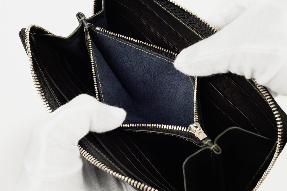 カード入れ8箇所、札入れ2室、ファスナーによるコイン収納部、預金通帳も収納できます。